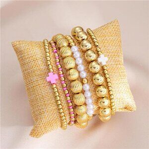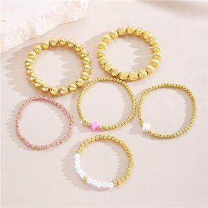 Gold Bracelet Stack: Gold bracelet sets includes a set gold beaded bracelets which stacks well with all bracelets. Stretch beaded bracelets are a fun way to spice up any outfit, you can mix and match, stack, or go the simple route and only wear one.