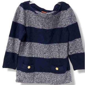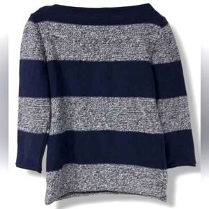 Tory BURCH Knit Women's Boat Neck 3/4 Sleeve Striped Nautical Stripped Blue and Gray Sweater.