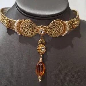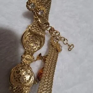 Vintage Luxurious Rare Galliano 18K Gold Plated Christian Dior Choker. Gripoix Style Diamond Amber Crystal