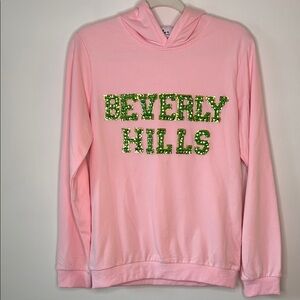 Lola + The Boys Crystal Beverley Hills Rhinestone Pink Green Hoodie Women’s Small