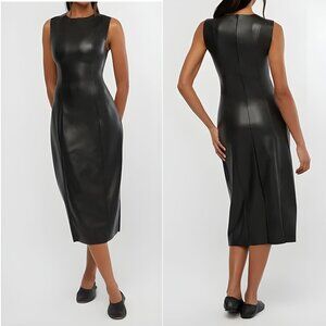 House Of Harlow 1960 Size L Black Faux Leather Sleeveless Slit Midi Dress