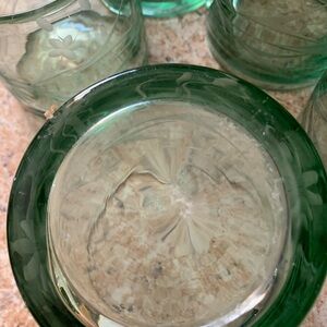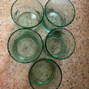 Vintage Mexico Bobby Flay green etched highball /old fashion set of 5 glasses.