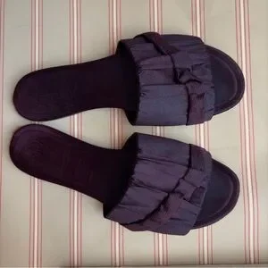 🥀 The Row Oxblood Satin "Ellen" Slide Sandals Sz EU 37.5 / US 7 🥀