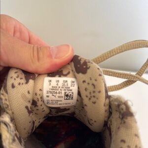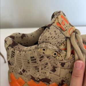 Puma sneakers with a bold camouflage pattern. Bright orange accents add flair. Ideal for active kids. See photos for condition.