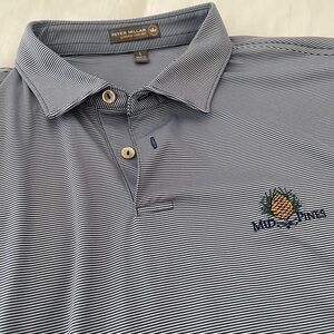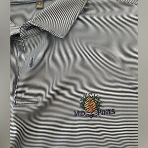 Peter Millar polo from Mid Pines, NC golf course. Super soft, light weight material. Like-new condition. Pin stripes are navy.