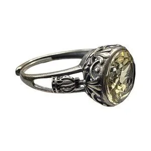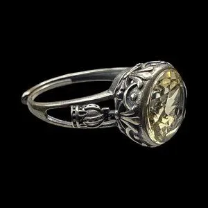 Vintage Silver citrine yellow gemstone large costume jewelry unisex adjustable