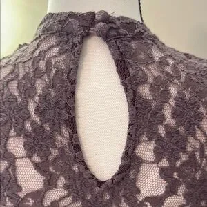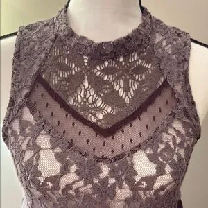 This gorgeous sleeveless blouse by Free People showcases a delicate lace design in purple tones, featuring a tiered silhouette and a charming bib collar. The intricate lace detailing adds a touch of vintage romance, making it a standout piece for any occasion. Pre loved and EUC, no holes, tears or rips. Two button closure at neck, with keyhole opening. πππ Size S. Measures- pit to pit- 16 inches, waist- 24+, hips- 32 inches. 100% nylon.