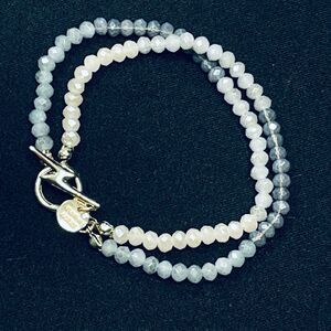 New! Gorgeous Marlyn Schiff beaded bracelet. Hard to find, rare -- no longer on website. Gray double-strand faceted beads in various shades of gray / grey, very light to medium-dark. Can be worn twisted or untwisted. Gold colored metal lightning bolt toggle closure. Great for casual everyday wear for school or work, or can be dressed up for fancy occasions. Approx 7" long. Pls see measurements in photos. New without tags, HTF.