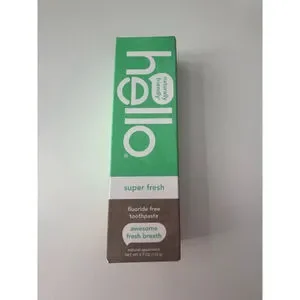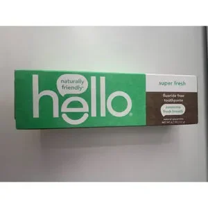 The item is a new Hello brand "super fresh" fluoride-free toothpaste in its original packaging.