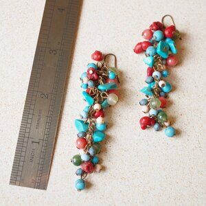 Vintage Boho Turquoise Coral Bead Cluster Earrings