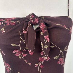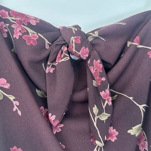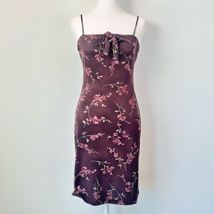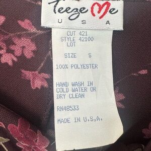 Vintage Y2k Teeze Me Deep Burgundy Dainty Pink Floral Fitted Dress