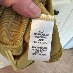 New with tags Lulu's Honey Love Velvet Bodycon Wrap Dress, Mustard Yellow, Size M. Hits about at the knee or below it depending on your height. Adjustable straps, back zipper closure with a hook at the top.