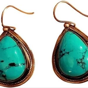Vintage Tribal Boho Chic Southwestern Navajo Turquoise Sterling Silver Earrings