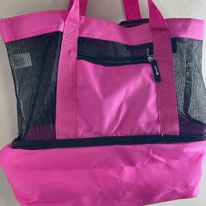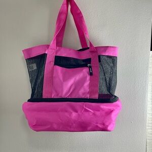 Pink Mesh Tote Bag With Insulated Cooler