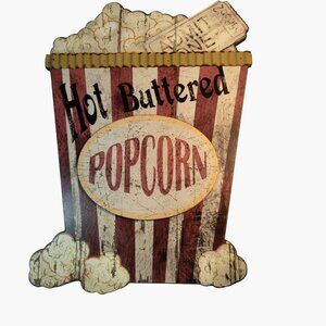 Rustic Popcorn Wall Decor Sign Hot Buttered Movie Theater Vintage Look