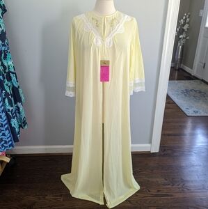 NEW Womens Deadstock Sears Yellow Lace Trim Robe Medium