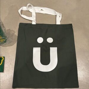 New Gruns tote bag, laying flat: 15” x 16.5”, 10” strap to shoulder