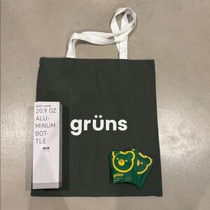 New Gruns Bundle: Tote bag, Aluminum Bottle, & 2 greens gummies samples