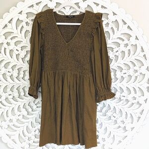 Madewell Flannel Lucie Vneck Smocked Dress In Olive Size Medium
