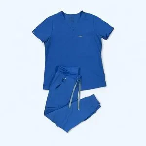 Light blue V-neck scrub top by Figs. Soft and professional design. CRT-2