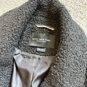 Cozy and chic teddy-style coat by Marc New York. Textured black fleece exterior, silver zipper pockets, and full lining for a polished, urban look.