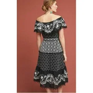 Anthropologie Marisol Off the Shoulder Dress Black Embroidered Midi 6