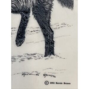The plaque features a beautifully crafted wolf design that showcases the artist's talent and passion for animal history. It is signed by the artist and is an original piece from the 1991 collection. This marble plaque is a perfect addition to any art collection and is a great way to personalize your space.