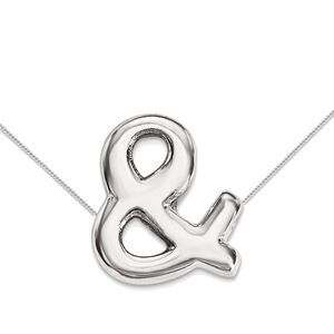 Sterling Silver Ampersand Charm Pendant Necklace and chain; This small and elegant ampersand slide charm is crafted from sterling silver with an 18 inch silver chain included.; Beautifully crafted in rhodium plated 0.925 sterling silver with a Rhodium plating Finish and includes the matching chain; Can be cleaned with standard jewelry cleaning solutions, warm soapy water or polishing cloths - do not use abrasives as it will leave scratches; This item ships directly from the USA. If you are not completely satisfied, simply return for a 100% refund; This item ships in signature jewelry box packaging, ready for gift-giving with a classic, elegant look and feel; This Pendant Necklace is the perfect gift for any birthday, anniversary, holidays, thank you, thinking of you, or for any reason at all; SKU: 62QGG9014