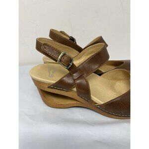 Dansko Taci Brown Waxi Calf Leather Ankle Strap Cut Out Wedgie Size 9 US, 40 EU