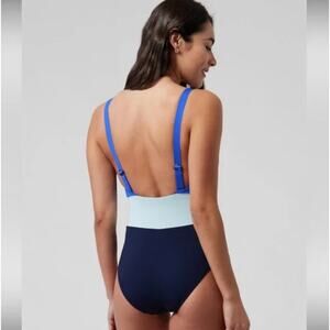 Athleta Coastline Colorblock One Piece Swimsuit in Blue. Size Large
