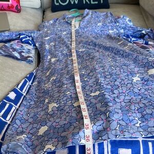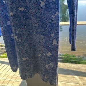 Long sleeve mandarin collar 95 cotton/5 Lycra by MAHI GOLD. Features hydrangea (I think!) floral. Very comfortable and flattering.
