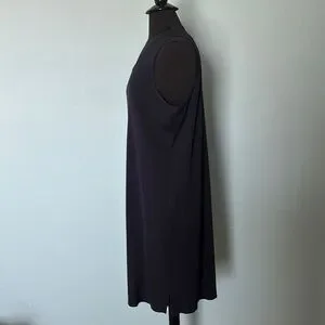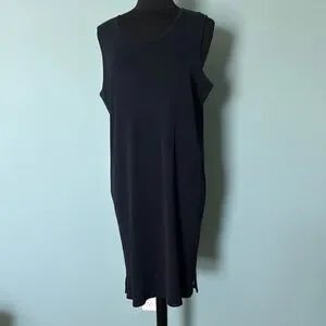 This sleek navy sheath dress by Ming Wang features a sleeveless design and a classic crew neck, making it ideal for both casual and work settings. Its midi length and minimalist style offer a versatile and timeless look.