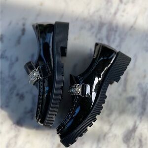 #GirlsShoes #Loafers #PatentLeather #Rhinestone #SchoolStyle #TrendyKids #DressShoes #YouthSize1 #ChunkySole #BackToSchool