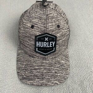 Hurley Hat Gray Baseball Cap Flex Fit S/M Beach Ocean Surf Waves Black Logo