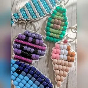 Unique avocado beaded keychain bag charm with green, brown beads. Perfect for adding a personal touch to your bag.