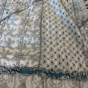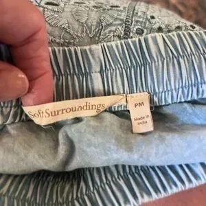 This blue maxi skirt from Soft Surroundings features an A-line silhouette with an asymmetrical ruffled design, perfect for casual or resort wear. The lightweight fabric and flowing style make it an ideal choice for a relaxed yet stylish look.