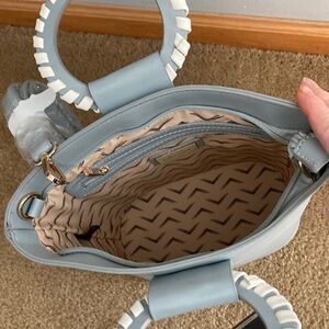 the Moda Luxe Paola Sky Blue and White Tote