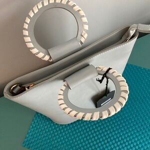 Moda Luxe Gray and White Tote with Nautical Handle NIP