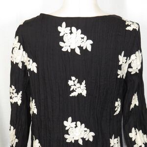 Indication Black Floral Embroidered Crinkle Fabric Dress Size Small