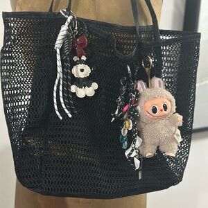 This cute plush bunny keychain is perfect for adding a touch of fun to your child's accessories. Featuring a soft, cream-colored bunny design, it's a delightful addition to any backpack or bag.