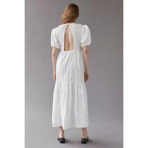 UO EN SAISON MARA White Midi Tiered Smocked Puff Sleeve Dress Women's Sz M