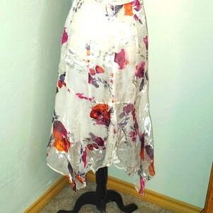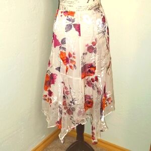 Retro Silk Skirt Floral Shark Bite Hem Lined Romantic Fairy Core SZ: 14