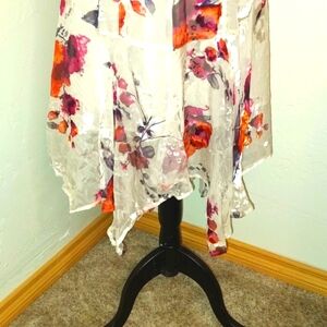 Lovely floral pattern with flowly shark bite hem.