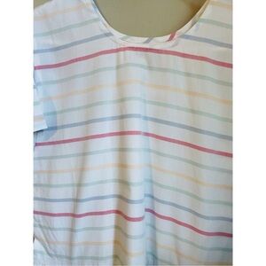 LAKE Size S Parasol Pleated Dress White Pastel Stripe Short Sleeve
