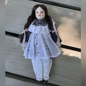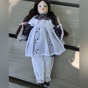 • Material: Porcelain head, arms, and legs with soft fabric body
