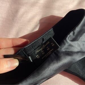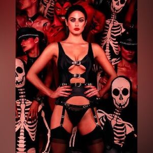 Bold black lingerie set. Strappy design with buckle details. Perfect for a daring look.