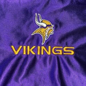 NFL VIKINGS Men’s Jerseys size XL. Bold purple & gold design. Features team logo on front. Ideal for fans & casual wear. 100% polyester. Length of jersey is 30”. Measurement from pit to pit is 24”. Embroidered on front of Jersey. In excellent condition. Smoke and pet free home.