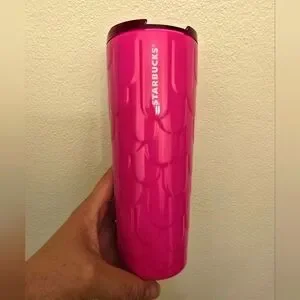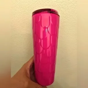 Limited Edition Starbucks 2025 Latin America (LATAM), Caribbean, Mexico, Puerto Rico Release. Stainless Steel Vibrant Hot Pink Starbucks tumbler with mermaid scale design. Perfect for hot or cold drinks.