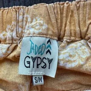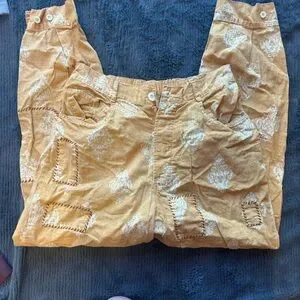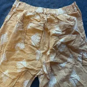 Women's Patchwork Patterned Cropped Pants (faded orange/dark yellow color)