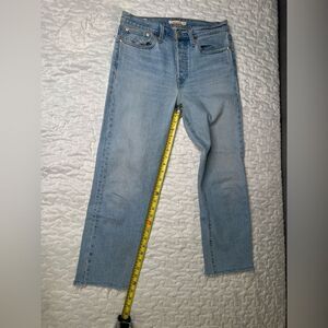 Levi’s Premium Wedgie Straight Jeans High-Rise Light Wash Cropped Raw Hem Sz 29